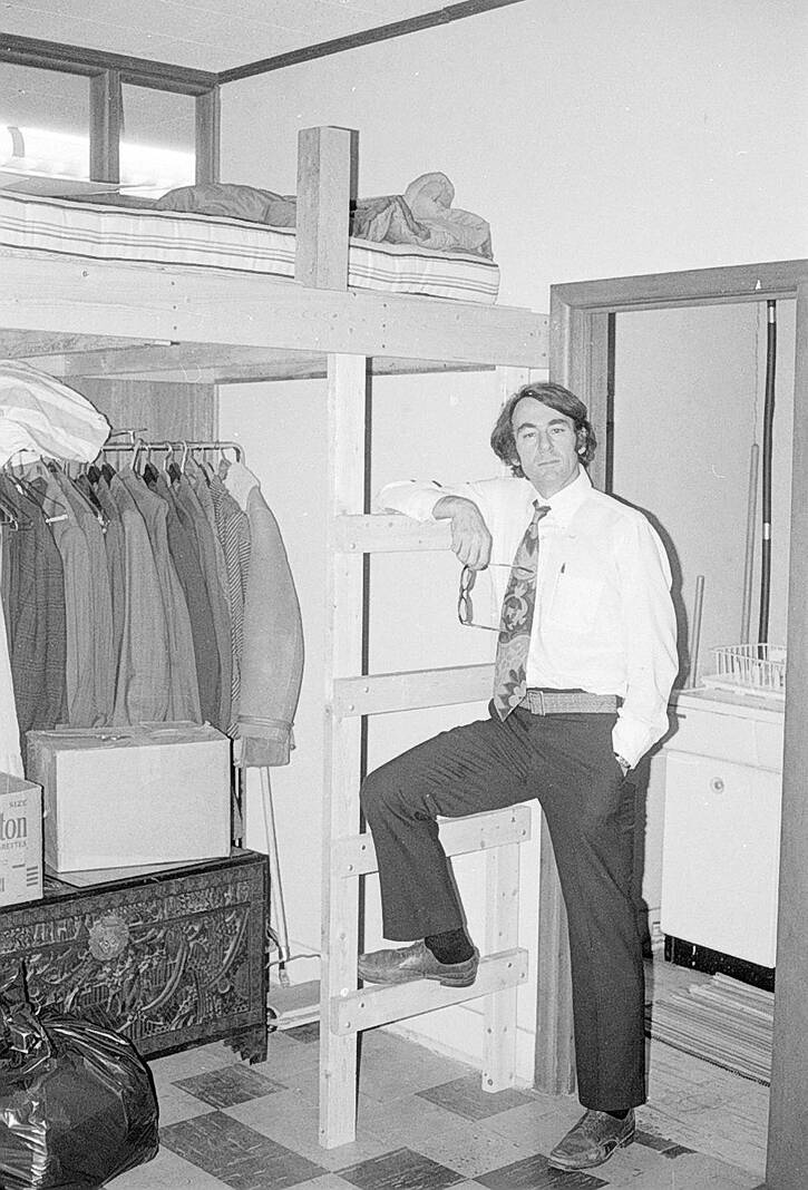 Columbus Judge David Mosier leans against a ladder to the bed in the rear of his law office at 205 Washington St. on Oct. 22, 1975.