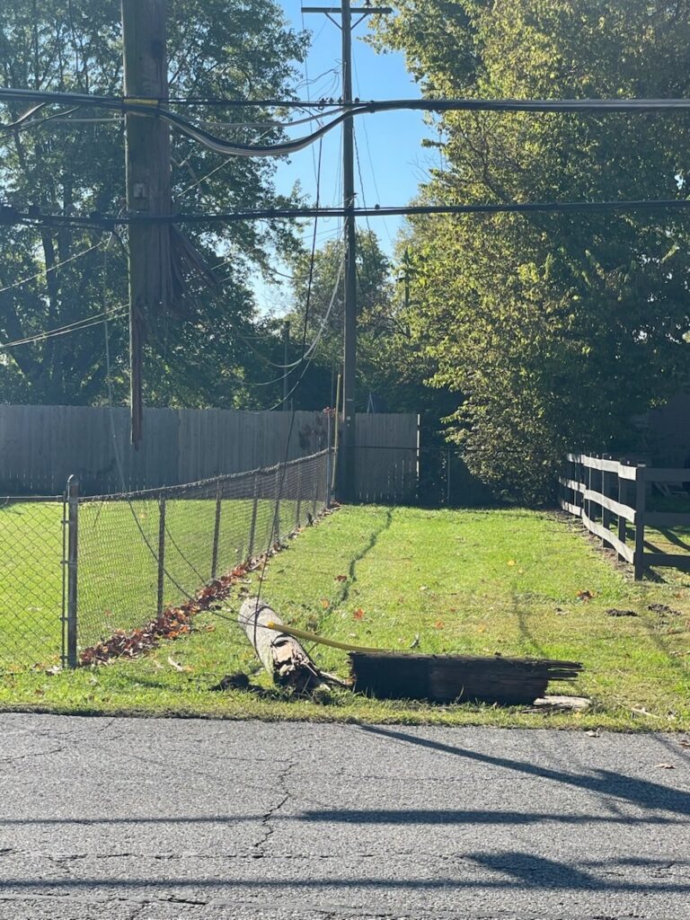 Broken utility pole after accident on McKinley Avenue. PHOTO BY THE REPUBLIC