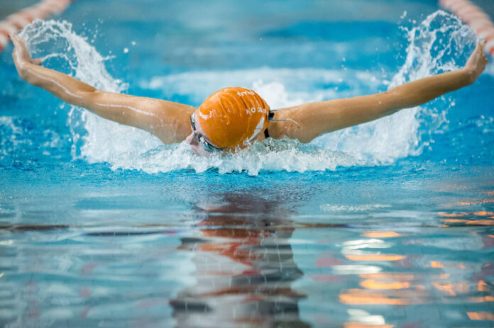 Columbus East swimmer Cortney VanLiew practices her butterfly technique during swim practice at Columbus East High School on Nov. 6, 2015.