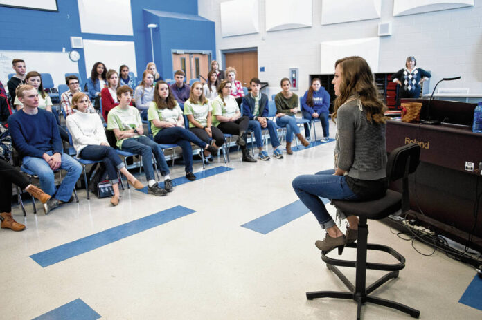 Broadway singer Laura Osnes visited Columbus North High School to critique the show choir’s performance and give students advice on how to better connect with the material they were performing.
