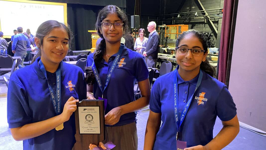 Photo provided Natasha Lulla, Niharika Kota, and Ridhi Tirupathi were among the state champion spellers at Indiana’s spell bowl this year.
