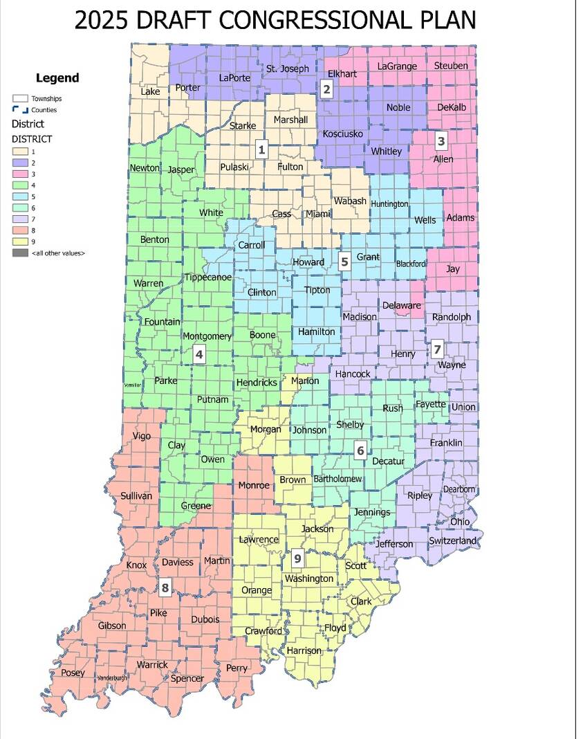 The proposed map released Monday would place all of Bartholomew County within Indiana’s 6th Congressional District, eliminating the current split between the 6th and 9th districts the county. A total of 5,964 registered Bartholomew County voters currently reside in the 9th District, according to the Bartholomew County Clerk’s Office.