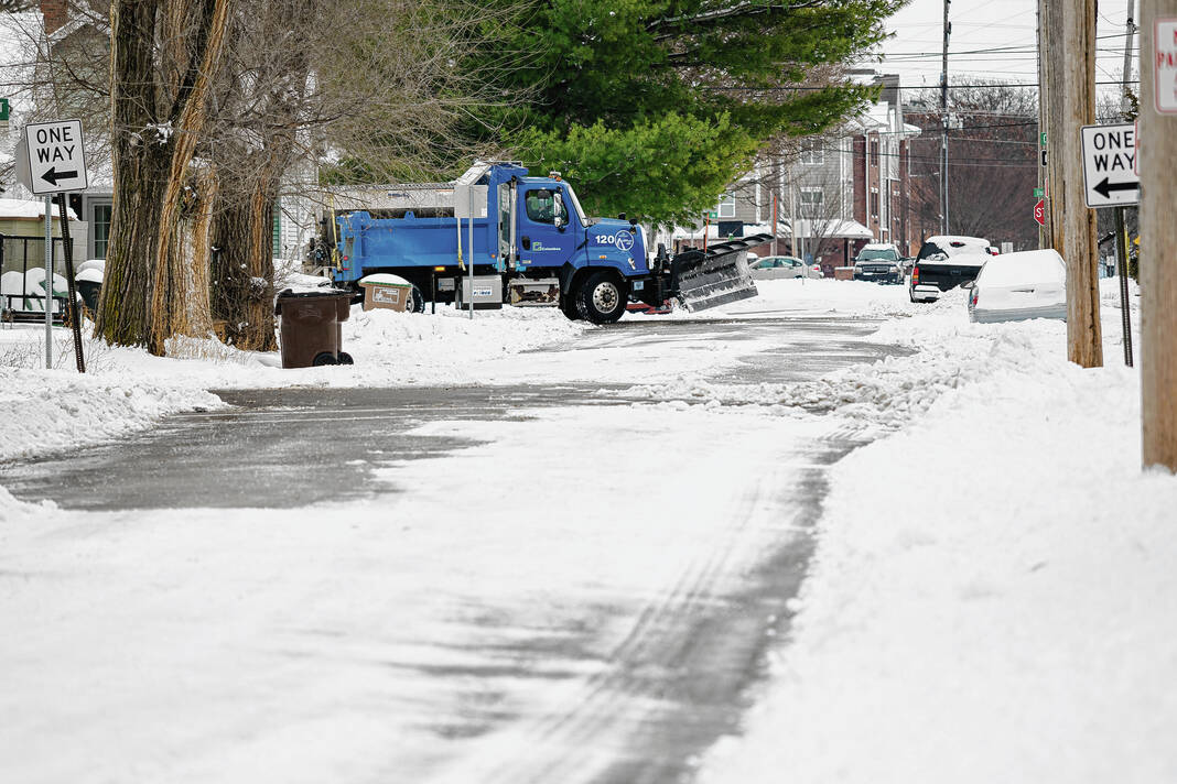 Mike Wolanin | The Republic A snow plow clears snow on 13th Street in Columbus, Ind., Tuesday, January 7, 2025.