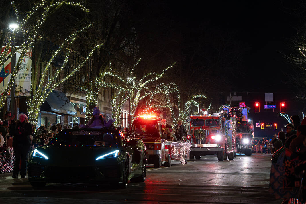 Mike Wolanin | The Republic Vehicles pass by spectators during the annual Festival of Lights Parade in Columbus, Ind., Saturday, Dec. 6, 2025.