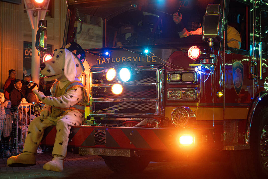Mike Wolanin | The Republic A person in a dalmation costume waves at spectators from the front of a Taylorsville fire truck during the annual Festival of Lights Parade in Columbus, Ind., Saturday, Dec. 6, 2025.