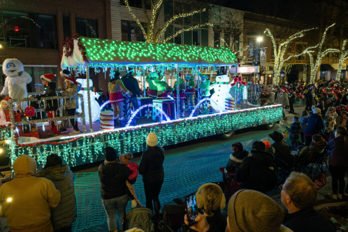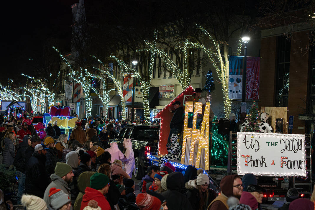 Mike Wolanin | The Republic Floats pass by spectators on Washington Street during the annual Festival of Lights Parade in Columbus, Ind., Saturday, Dec. 6, 2025.