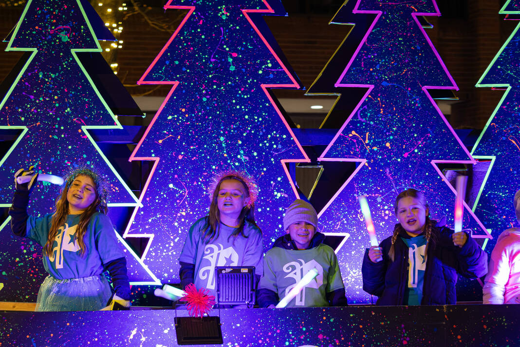 Mike Wolanin | The Republic Parade participants sing and dance on a float during the annual Festival of Lights Parade in Columbus, Ind., Saturday, Dec. 6, 2025.