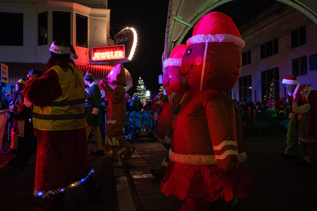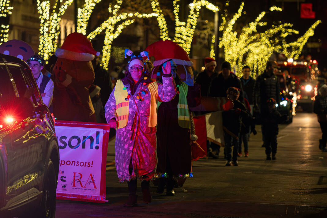 Mike Wolanin | The Republic People walk on Washington Street as they participate in the annual Festival of Lights Parade in Columbus, Ind., Saturday, Dec. 6, 2025.