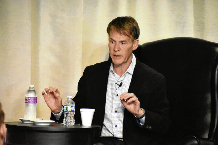 U.S. Rep. Jefferson Shreve, R-Indiana, gestures while speaking to Aspire Johnson County’s Legislation Matters luncheon attendees Thursday at Valle Vista Golf Club in Greenwood.