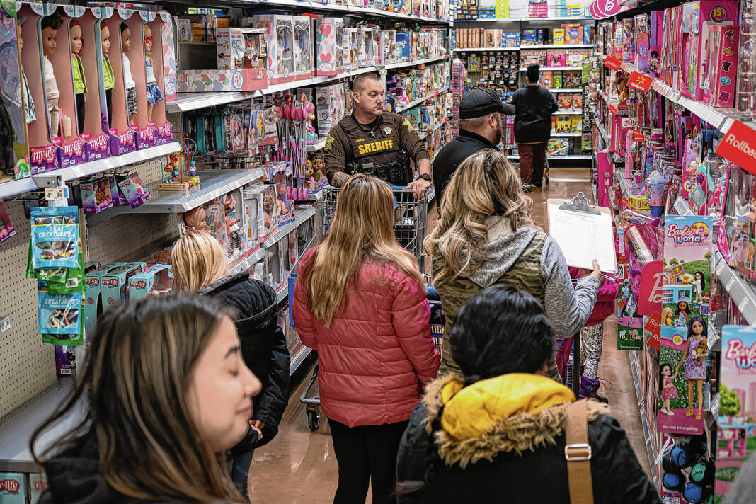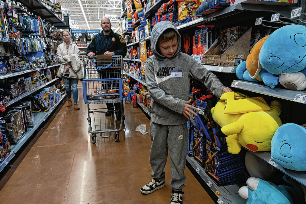 Mike Wolanin | The Republic People check out a toy aisle during Shop with a Cop at the westside Walmart in Columbus, Ind., Sunday, Dec. 14, 2025.