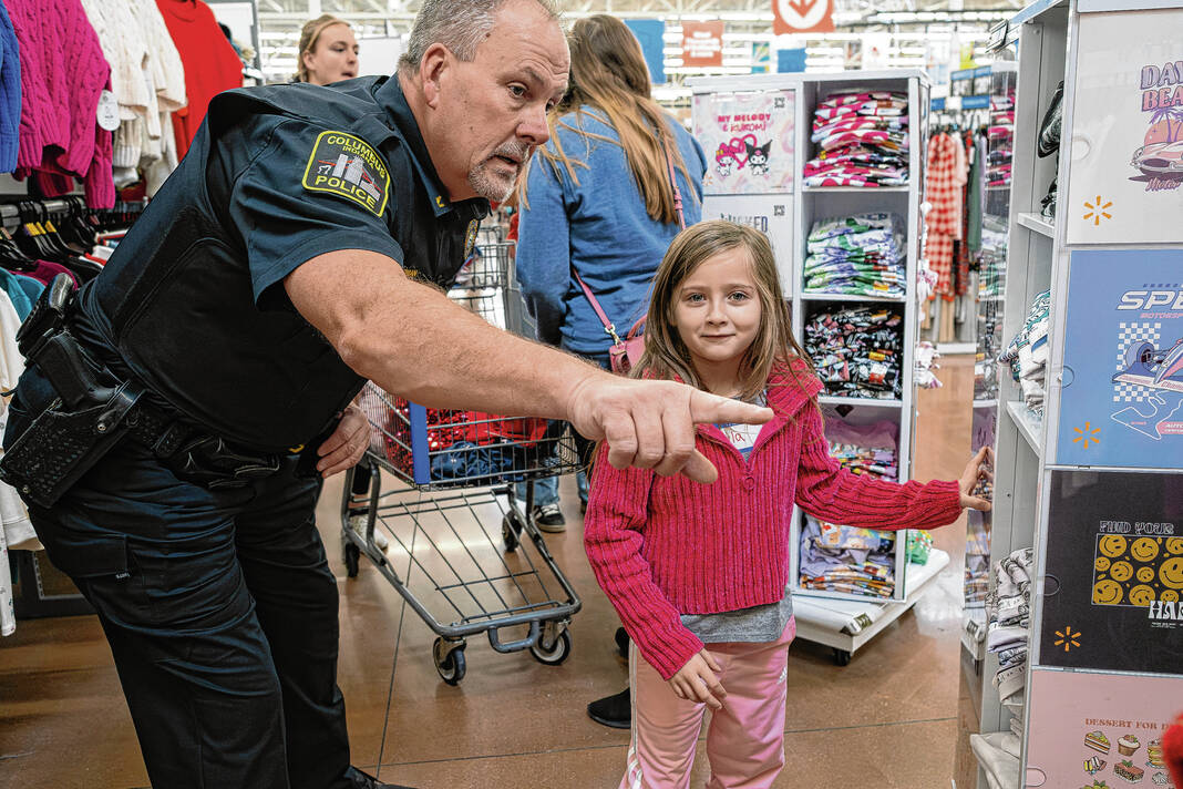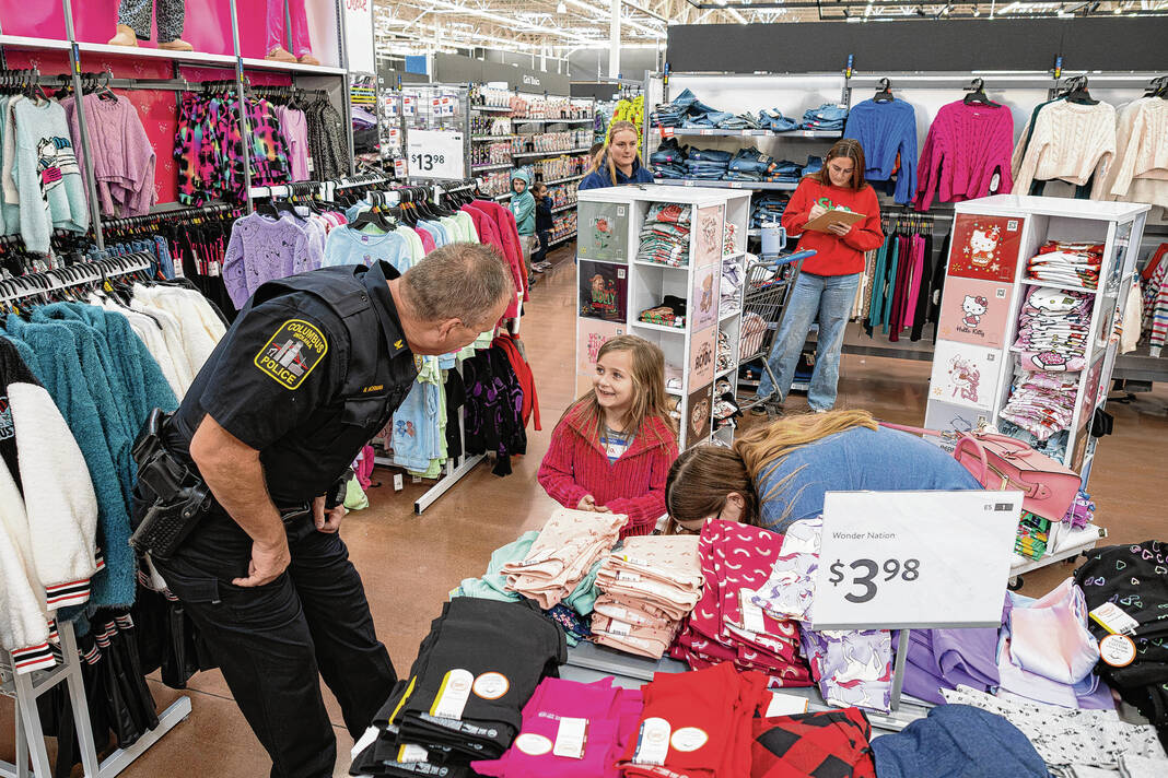 The 2025 Shop with a Cop event was held at Walmart on Sunday, with officers from the Columbus Police Department, Bartholomew County Sheriff’s Office, Indiana State Police and Department of Natural Resources donating their time to provide shopping assistance to 155 children.