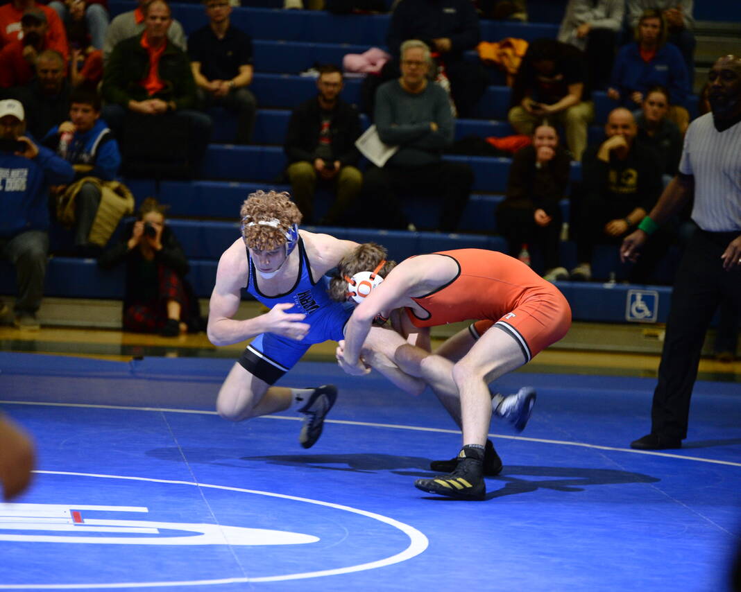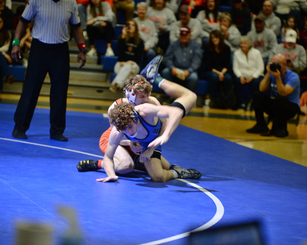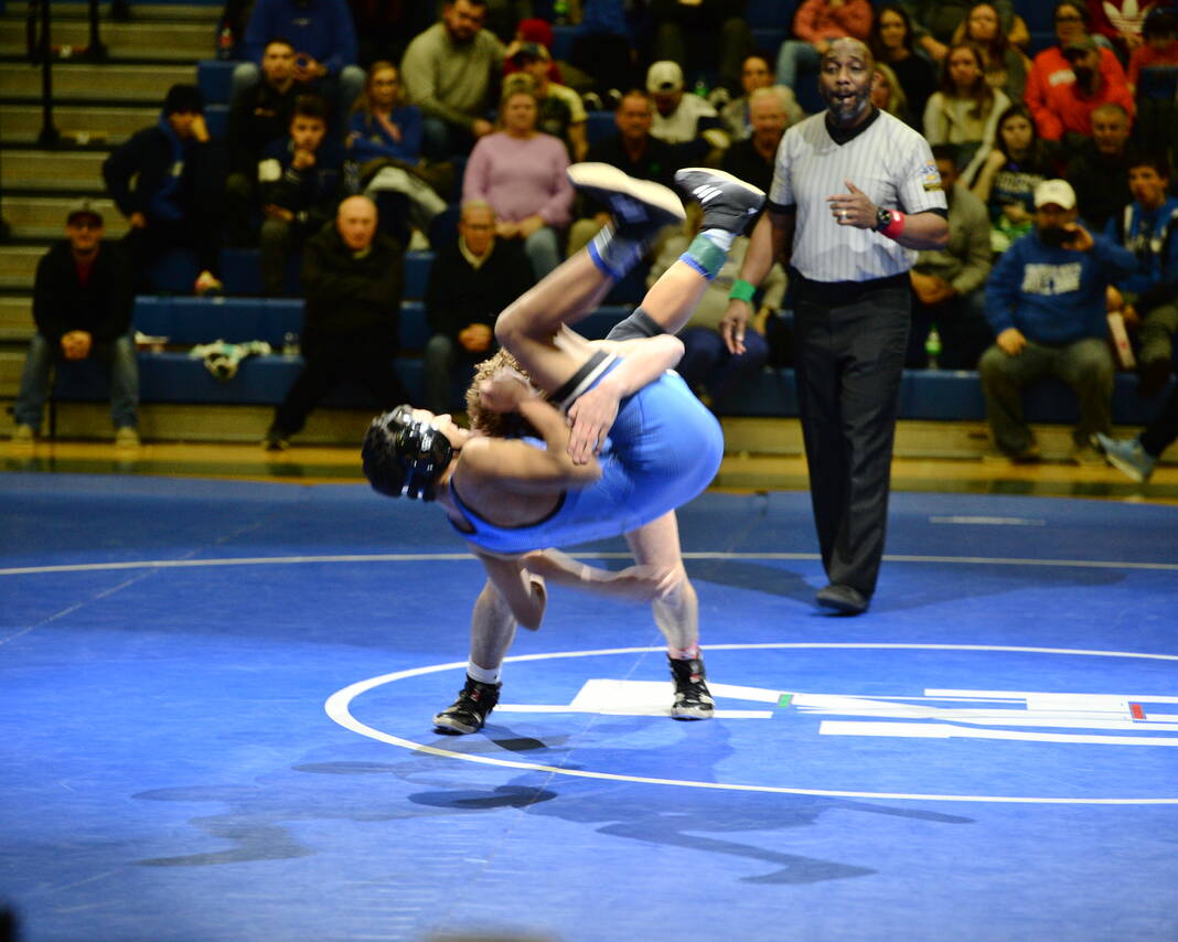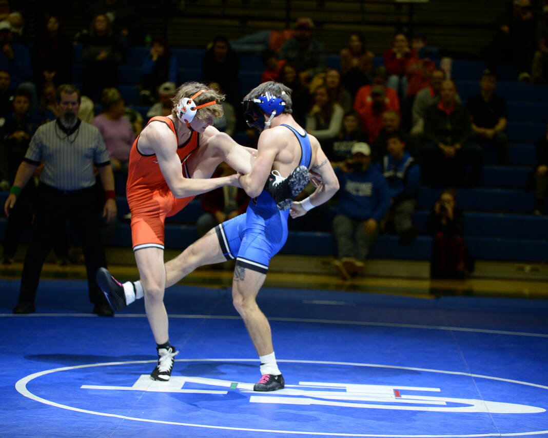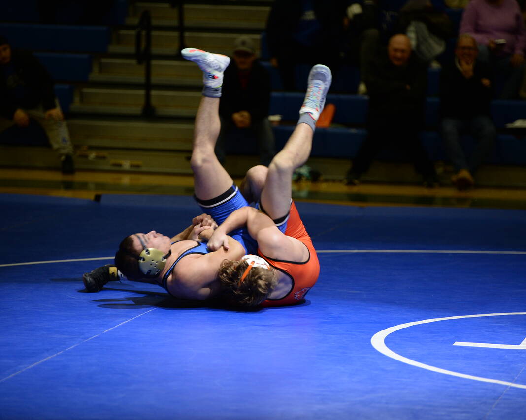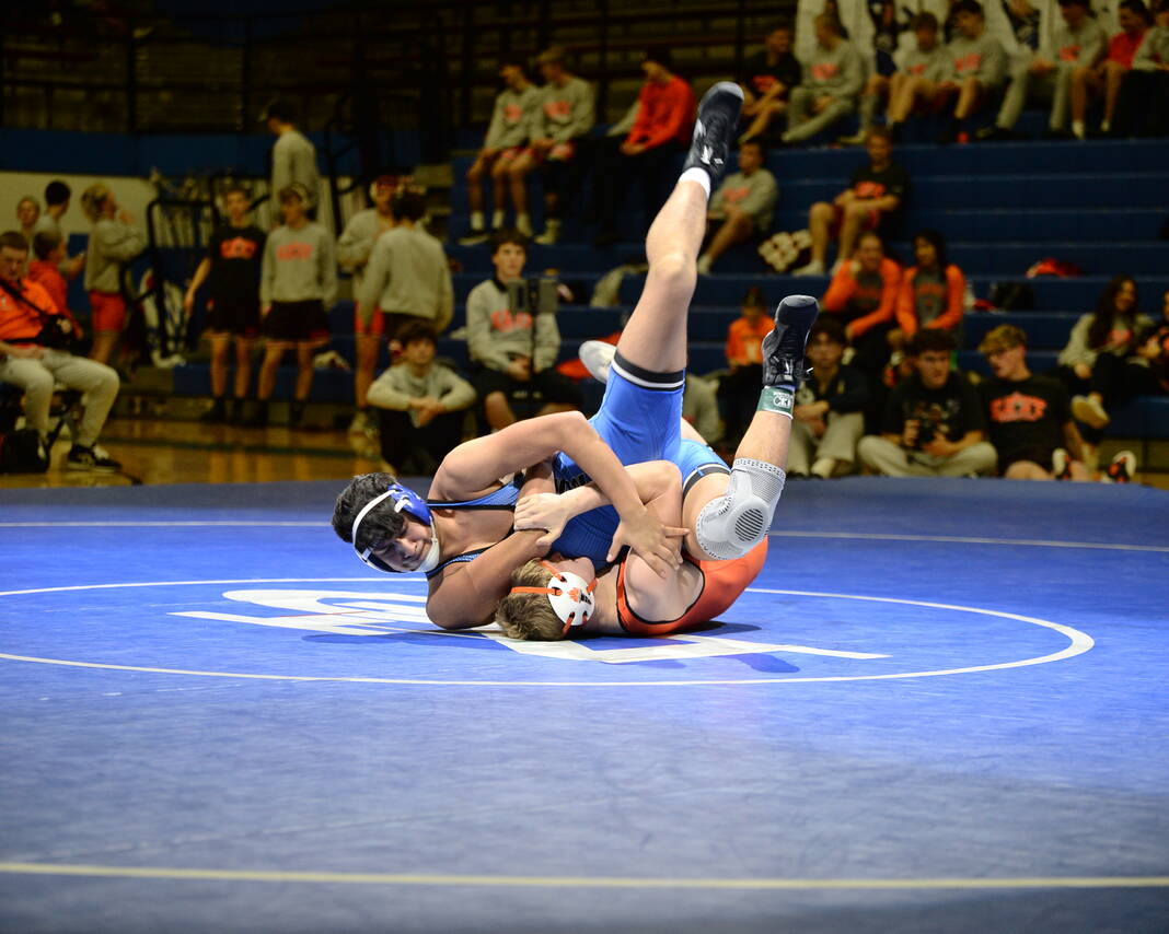 The most anticipated match of the night came at 150, where the Bull Dogs’ seventh-ranked Cohen Long battled the Olympians’ eighth-ranked Caleb Kirkpatrick. Kirkpatrick came through with a third-period pin.