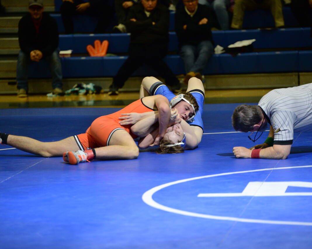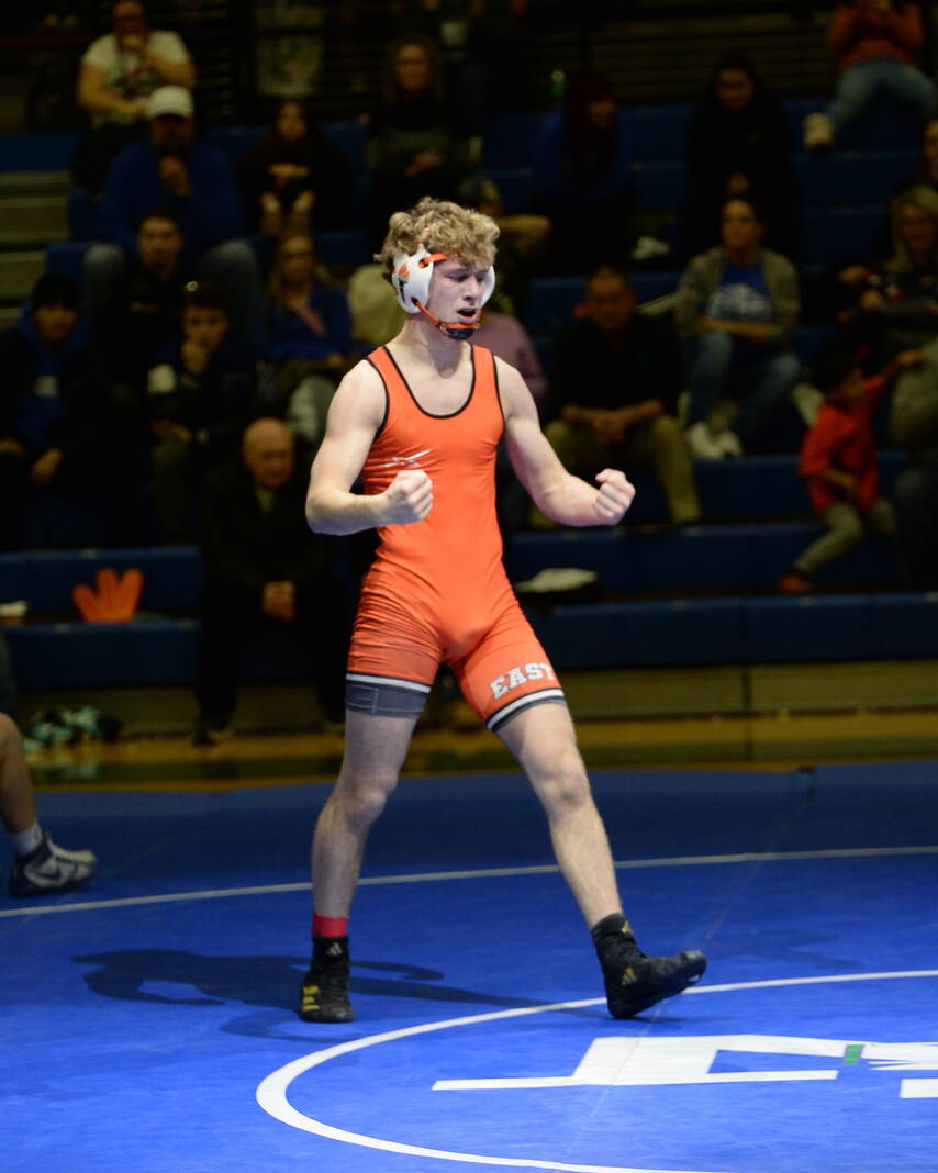East had five pins, the first three of which came from freshmen. Joel Smith pinned Alex Stahley at 106 pounds, Gage Pacek pinned Som Bosley at 120 and Cam Cooper pinned Skyler Burns at 144.