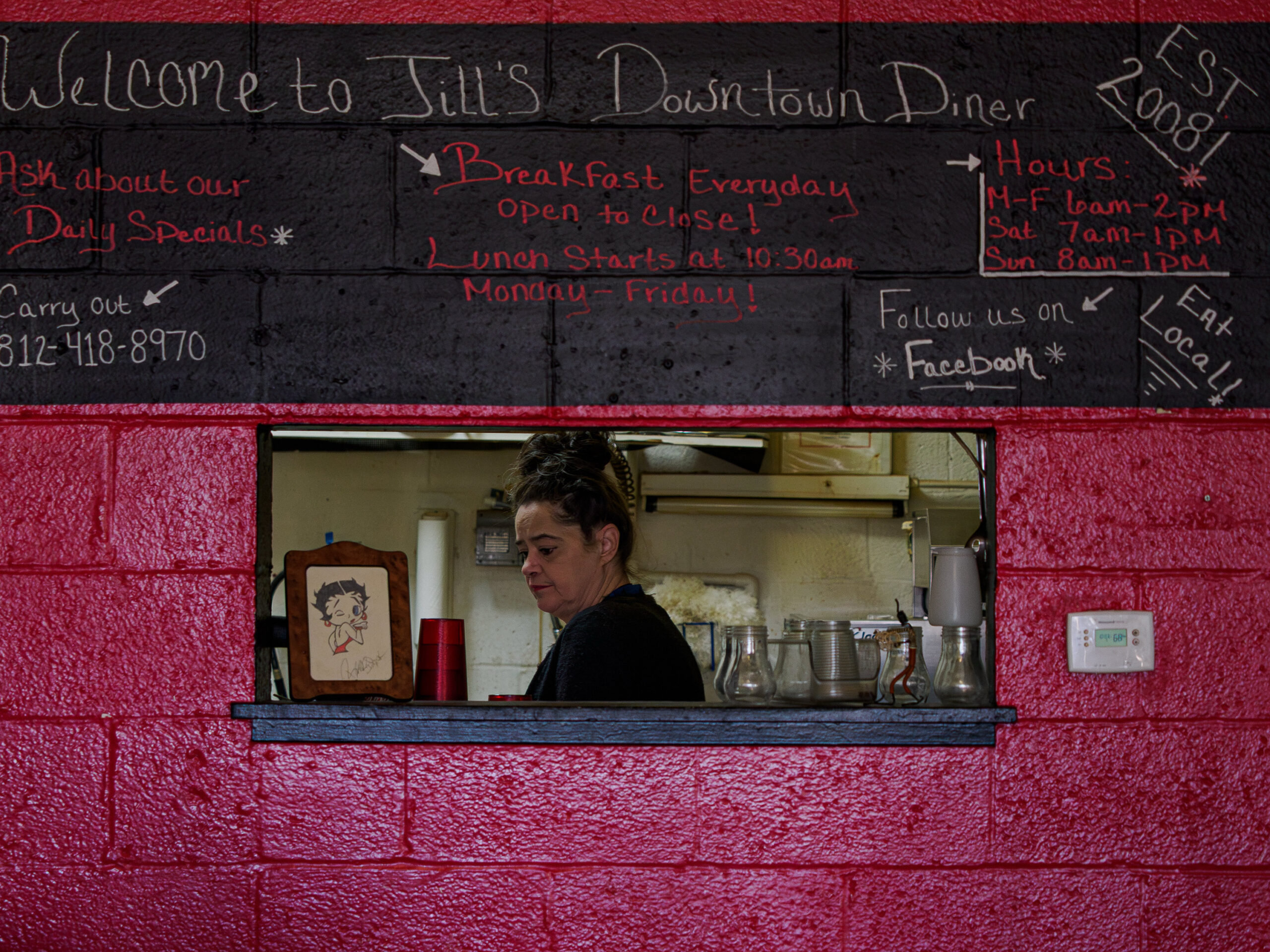 Jill England, owner of Jill’s Downtown Diner, walks through the kitchen of her restaurant in Columbus, Ind., Friday, Feb. 14, 2025. England recently announced that the landlord has decided not to renew lease for Jill’s Downtown Diner and the restaurant will be forced to close until they can move to a new location.