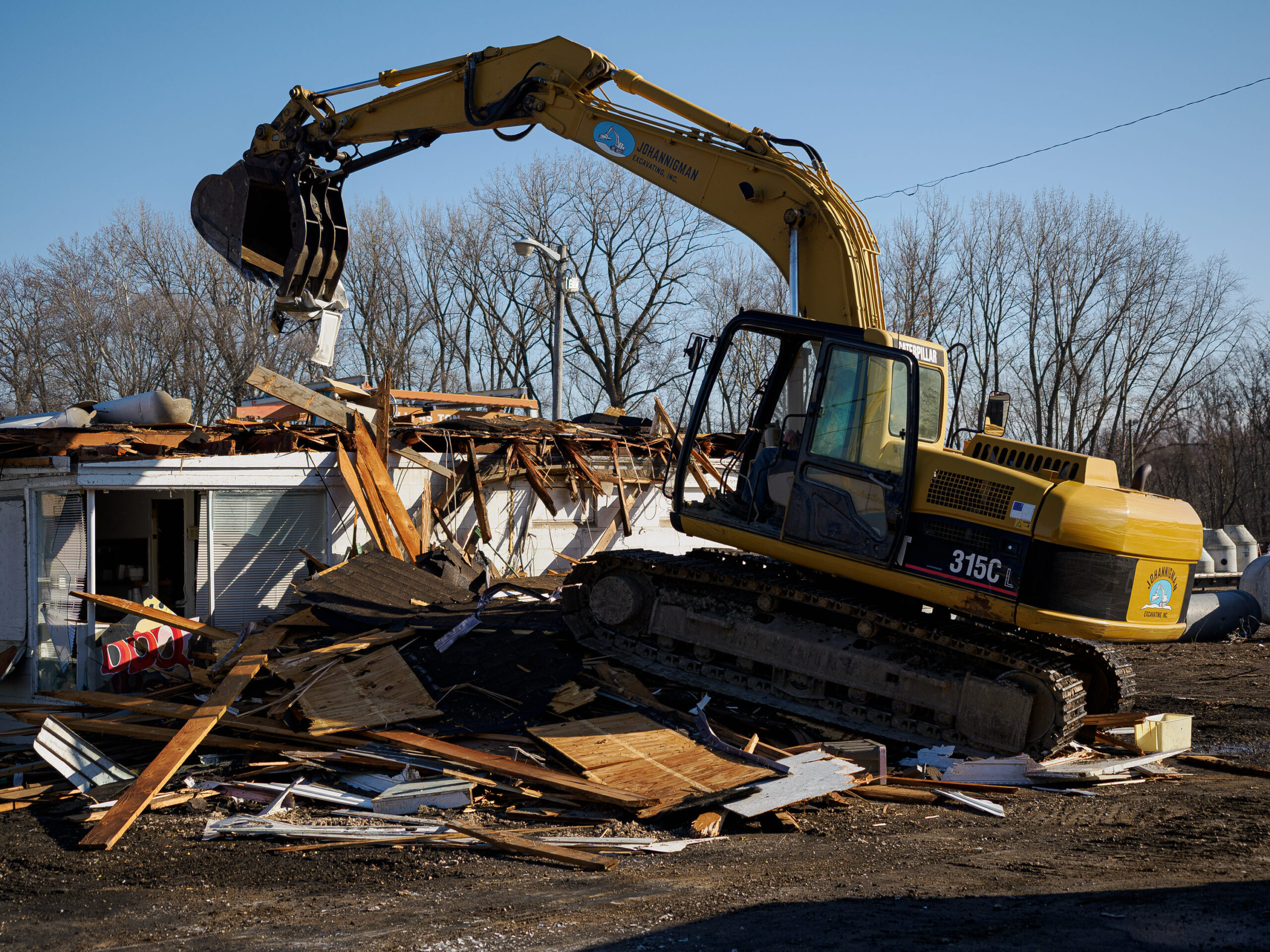 The old Musillami’s Drive-In off State Road 11 in Columbus, Indiana is under demolition, Tuesday, Feb. 25, 2025.