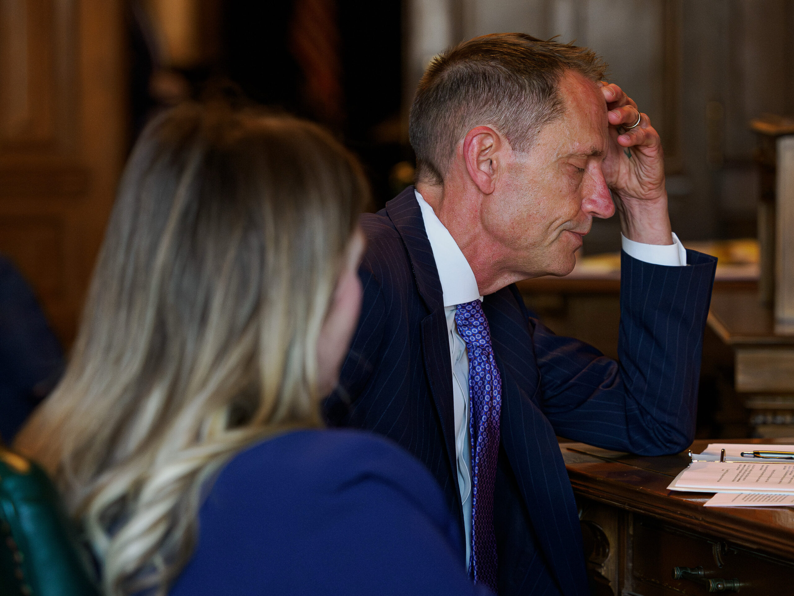 George Hoffman III takes a moment before his oral argument on behalf of Jay Foyst in the case of Ross Graham Thomas v. Joseph Foyst in front of the Indiana Supreme Court at the Indiana Statehouse in Indianapolis, Thursday, March 13, 2025.