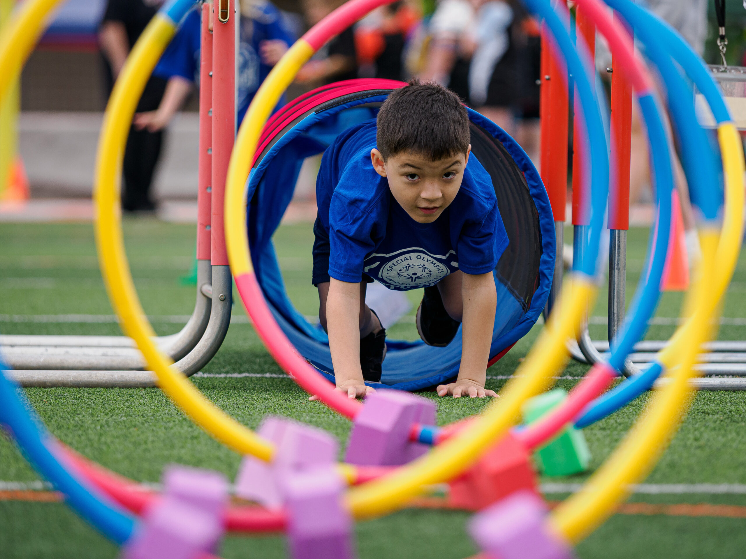 Clifty Creek student Kolton Williams navigates an obstacle during the Young Champions Day field day event at Columbus East High School in Columbus, Ind., Tuesday, May 13, 2025.