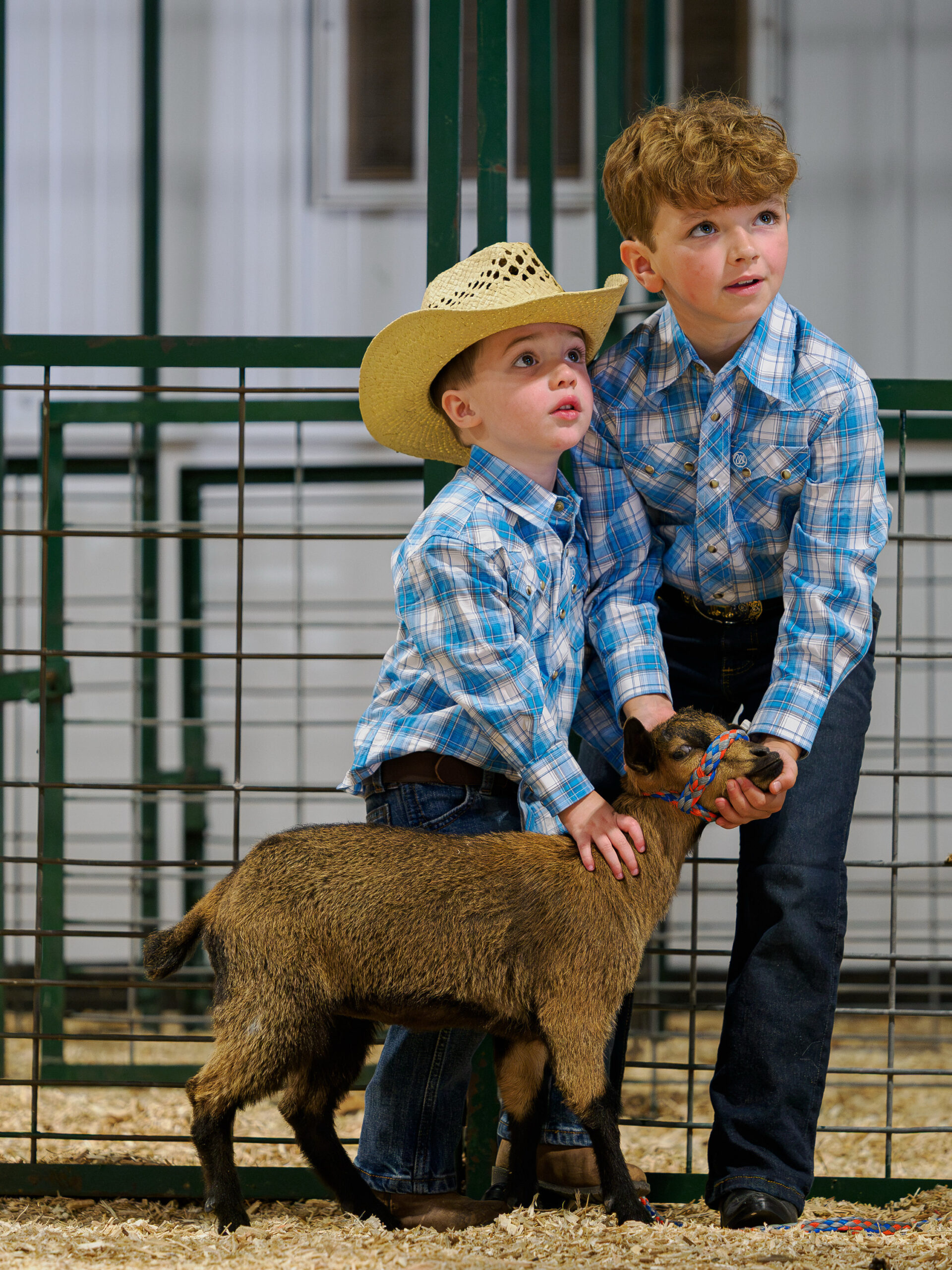 Cousins Cash Screeton, left, and Colt Henry take part in the Lil Wranglers portion of the 4-H Goat Show during the Bartholomew County 4-H Fair at the Bartholomew County 4-H Fairgrounds in Columbus, Ind., Saturday, June 21, 2025.