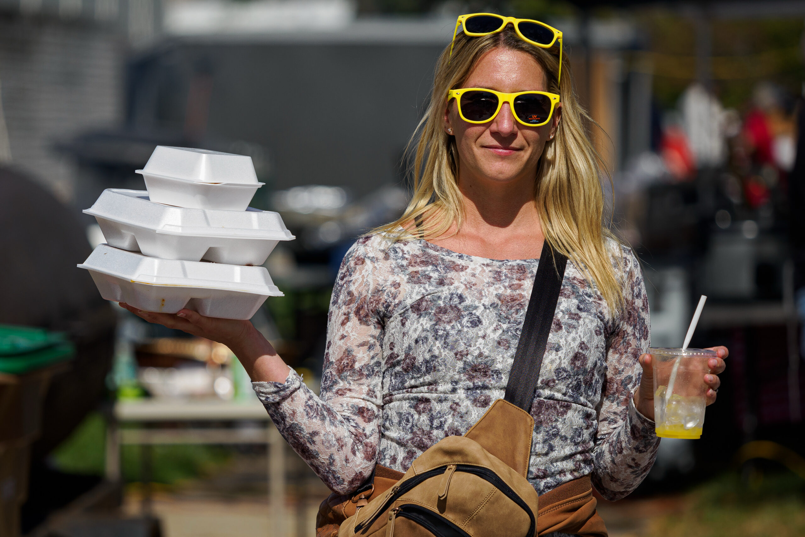 Raeana King’s hands are full during Ethnic Expo in Columbus, Ind., Friday, Oct. 10, 2025.