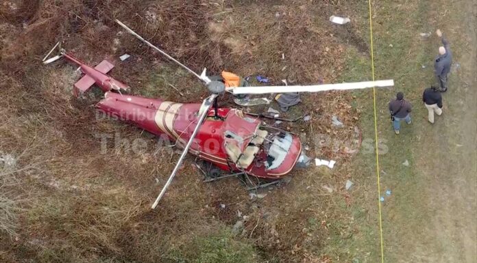 HAMMONTON, N.J. (AP) — Two helicopters crashed in New Jersey in what federal authorities say was a midair collision that killed one person and critically injured another.