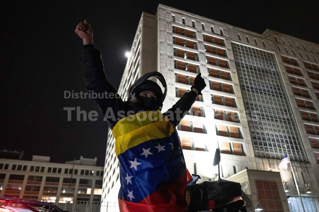 A throng of Venezuelan expatriates, many draped in flags, gathered on the sidewalks outside the jail Saturday night to celebrate Maduro’s capture. The crowd cheered as the law enforcement motorcade believed to be carrying the deposed leader and his wife arrived at the jail.