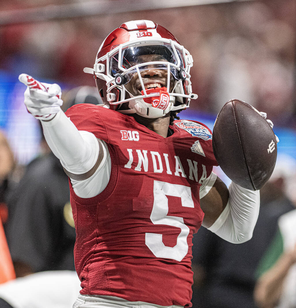 Indiana’s D’Angelo Ponds reacts during Friday’s CFP semifinal Chick-Fil-A Peach Bowl in Atlanta.