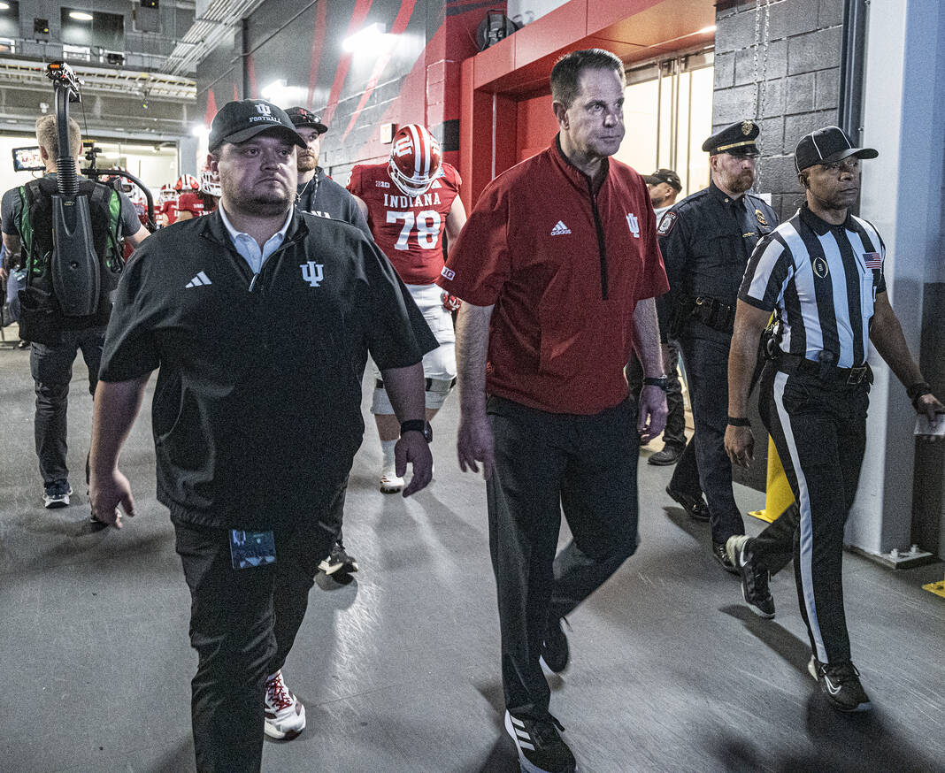 Indiana Curt Cignetti walks out of the locker room moments before the start of Friday’s CFP semifinal Chick-Fil-A Peach Bowl in Atlanta.