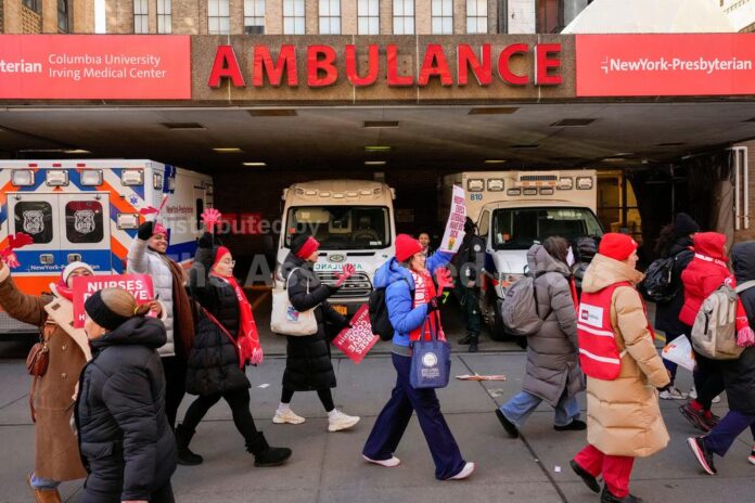 NEW YORK (AP) — Thousands of New York City nurses were set to return to the picket lines Tuesday as their strike targeting some of the city’s leading hospital systems entered its second day.