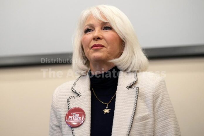 Peters also said District Court Judge Matthew Barrett violated her First Amendment rights by punishing her with a stiff sentence of nearly a decade for making allegations about election fraud. He called her a “charlatan” and said she posed a danger to the community for spreading lies about voting and undermining the democratic process.