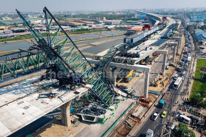 The latest accident on the outskirts of Bangkok saw a construction crane collapse on the Rama 2 Road elevated expressway in Samut Sakhon province at around 9 a.m., according to the government’s Public Relations Department, which added that two vehicles were trapped in the wreckage, which included massive metal girders.