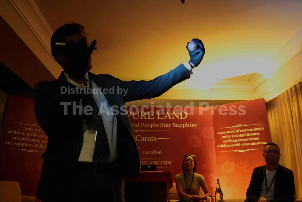 The round shaped gem named “Star of Pure Land” is the world’s largest documented natural purple star sapphire, said Ashan Amarasinghe, a consultant gemologist.