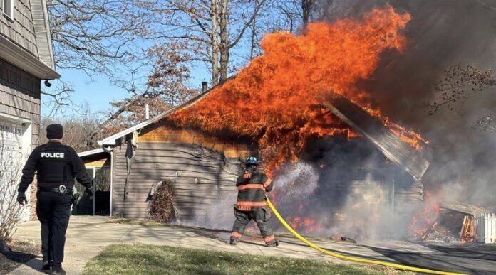 Crews encountered heavy fire at the scene and there were concerns about a large amount of ammunition that was stored inside the structure, which began to discharge during the fire, firefighters said.