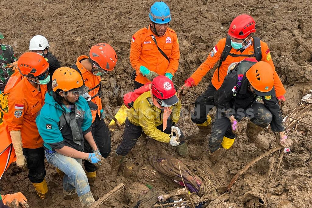 Videos released by the search agency showed rescuers using farm tools and bare hands to pull a body from the mud. Permana said that loose ground on the slope prevented heavy equipment from being deployed. He estimated mounds of mud were to be up to 5 meters (16 feet) high, saying “our teams must move carefully.”