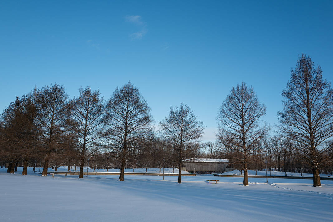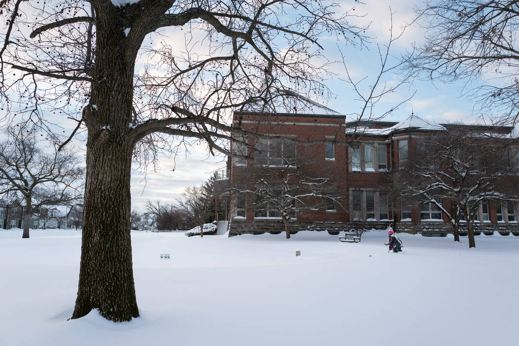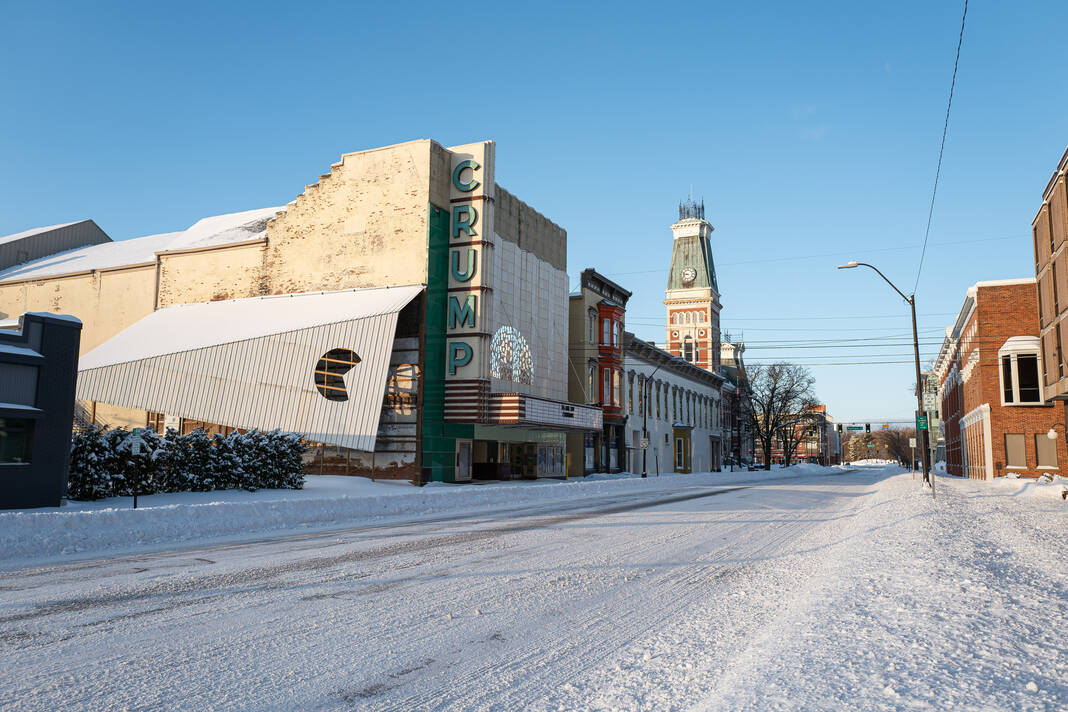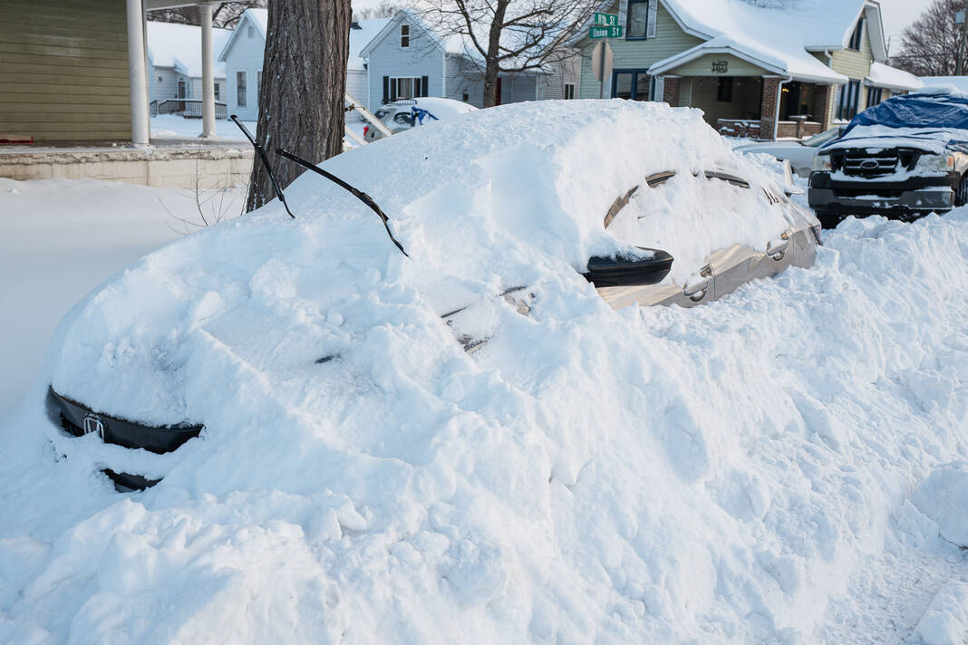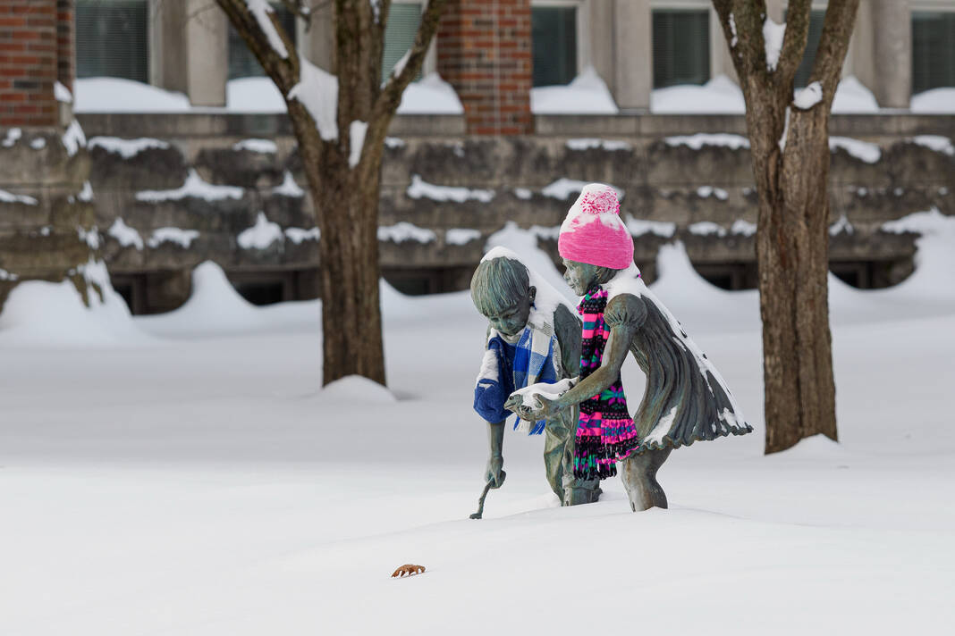 Mike Wolanin | The Republic Statues Frog Pond and Lilly brave the elements in Columbus, Ind., Monday, Jan. 26, 2026. A winter storm dropped over a foot of snow across Columbus and Bartholomew County.