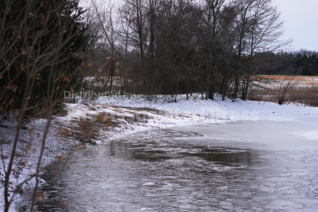 On Tuesday, a layer of ice still covered much of the small pond in a wooded area.