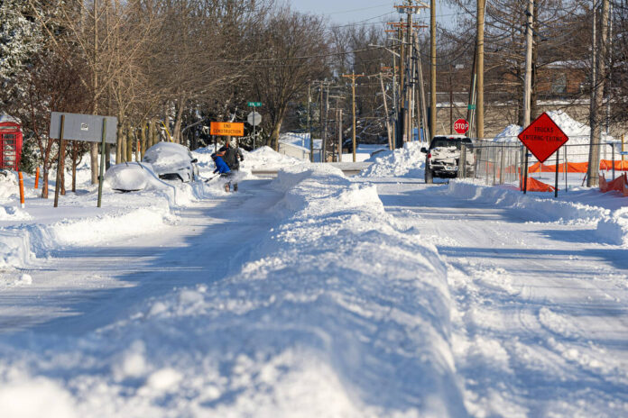 Mike Wolanin | The Republic People dig out on Jackson Street in Columbus, Ind., Monday, Jan. 26, 2026. A winter storm dropped over a foot of snow across Columbus and Bartholomew County.