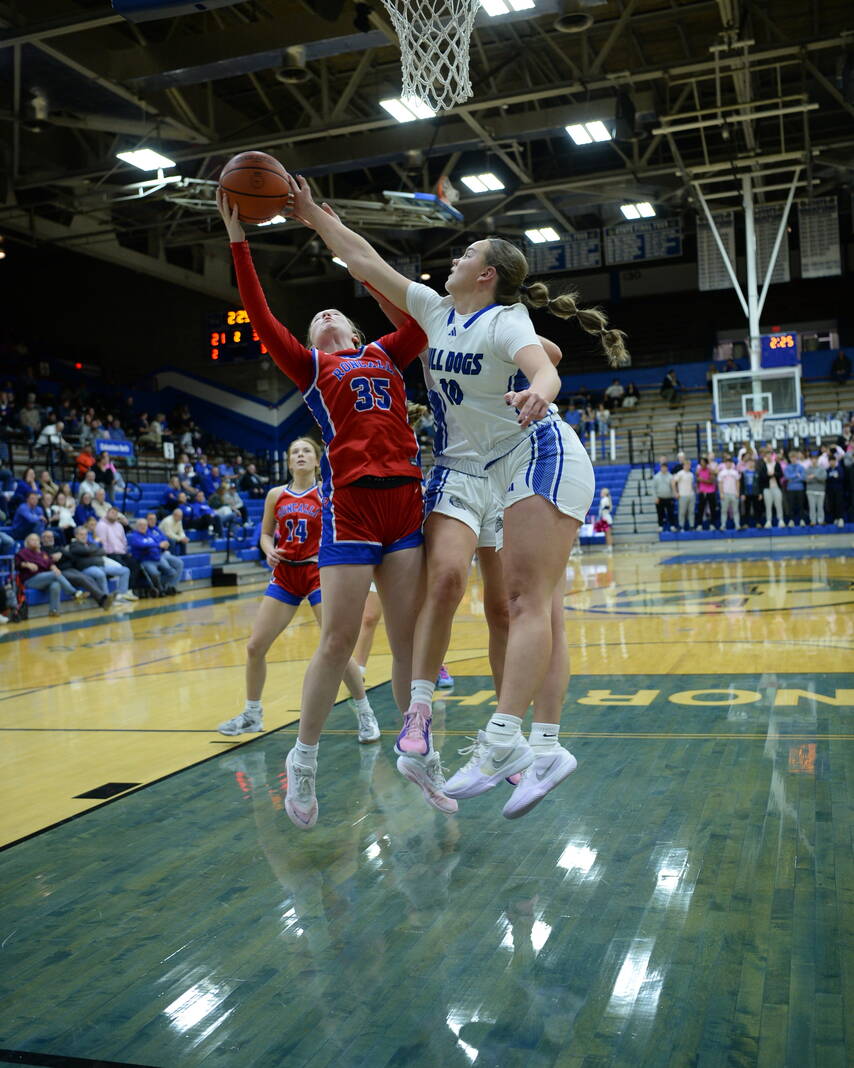 North got to within 48-42 on a 3-pointer by Riley Sims and 50-44 on a basket by Miley McClellan with 6:54 remaining. But Roncalli then scored seven consecutive points at the free-throw line, and the Bull Dogs couldn’t get closer than 11 the rest of the way.
