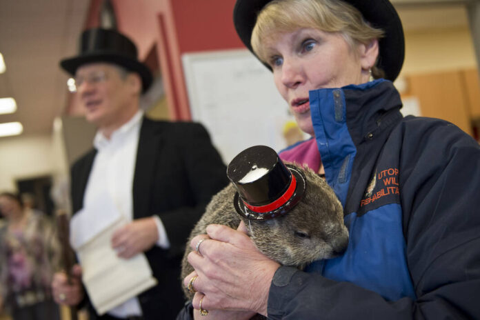 Grubby the Groundhog did not see her shadow during the annual Groundhog Day ceremony at Mill Race Center, predicting that winter would soon end to a crowd of about 60 people.