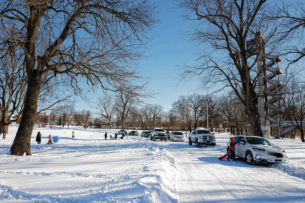 Mike Wolanin | The Republic Cars are parked on Carl Miske Drive at people sled at Mill Race Park in Columbus, Ind., Monday, Jan. 26, 2026.