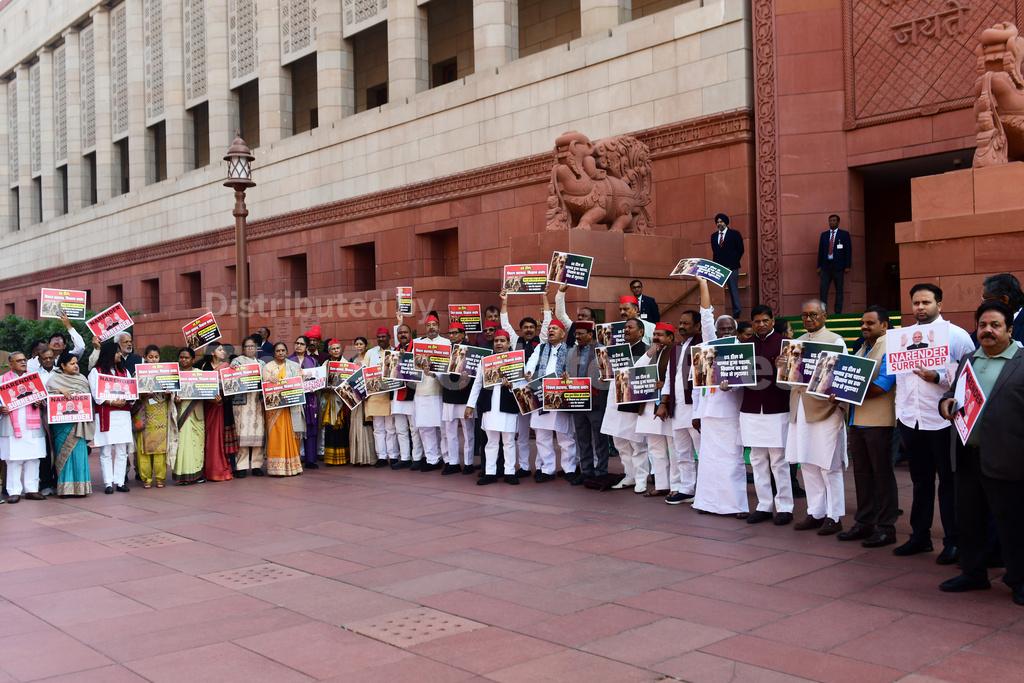 In Parliament, lawmakers from opposition political parties demanded that the government scrap the trade deal and criticized Prime Minister Narendra Modi with the slogan “Narendra Modi, surrender Modi.”