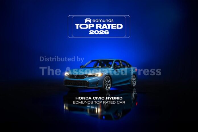 The Honda Civic maintains its spot from last year as the Edmunds Top Rated Car for 2026. With its available hybrid powertrain, the Civic achieves up to an EPA-estimated 49 mpg in combined city/highway driving, which is excellent for a small car. On top of that, the Civic Hybrid provides quick acceleration, roomy seating, and an upscale interior design that’s nicer than what you’ll find in the competition. Another bonus: The Civic Hybrid is available as a sedan or as a hatchback with extra cargo space.