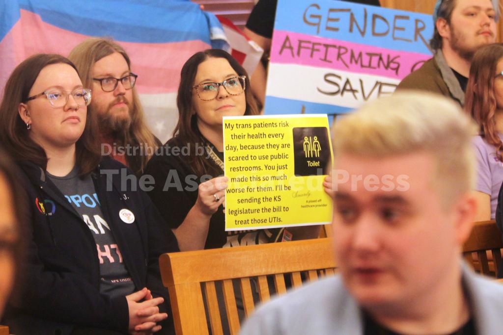 Kelly supports transgender rights, but GOP lawmakers have overridden her vetoes three of the past four years. Kansas bans gender-affirming care for minors and bars transgender women and girls from female sports teams, kindergarten through college.