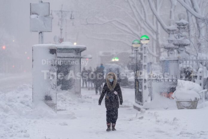 “The combination of heavy snowfall and strong winds will continue to produce blizzard conditions along the Northeastern Seaboard,” the weather service said Monday. “Sharply reduced visibility will make travel extremely treacherous across these areas.”