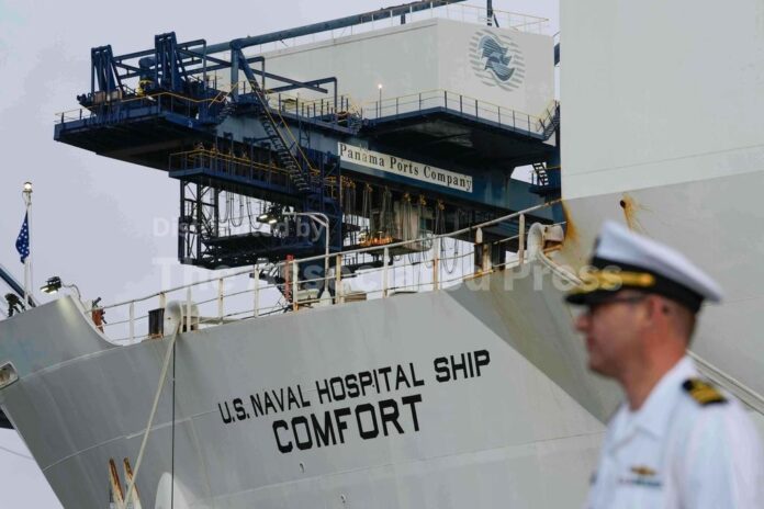 THE FACTS: The USNS Mercy and USNS Comfort are at a shipyard in Mobile, Alabama, according to social media posts from the shipyard showing the pair of white hospital ships alongside each other in late January. Publicly available ship tracking data show both ships are still in the shipyard.