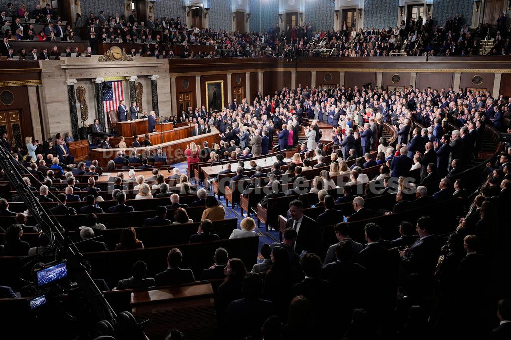 Vice President JD Vance and House Speaker Mike Johnson leapt to their feet behind him. So did Republican lawmakers watching from the House floor, adding applause. Almost all Democrats remained seated. Some stared, some squirmed.