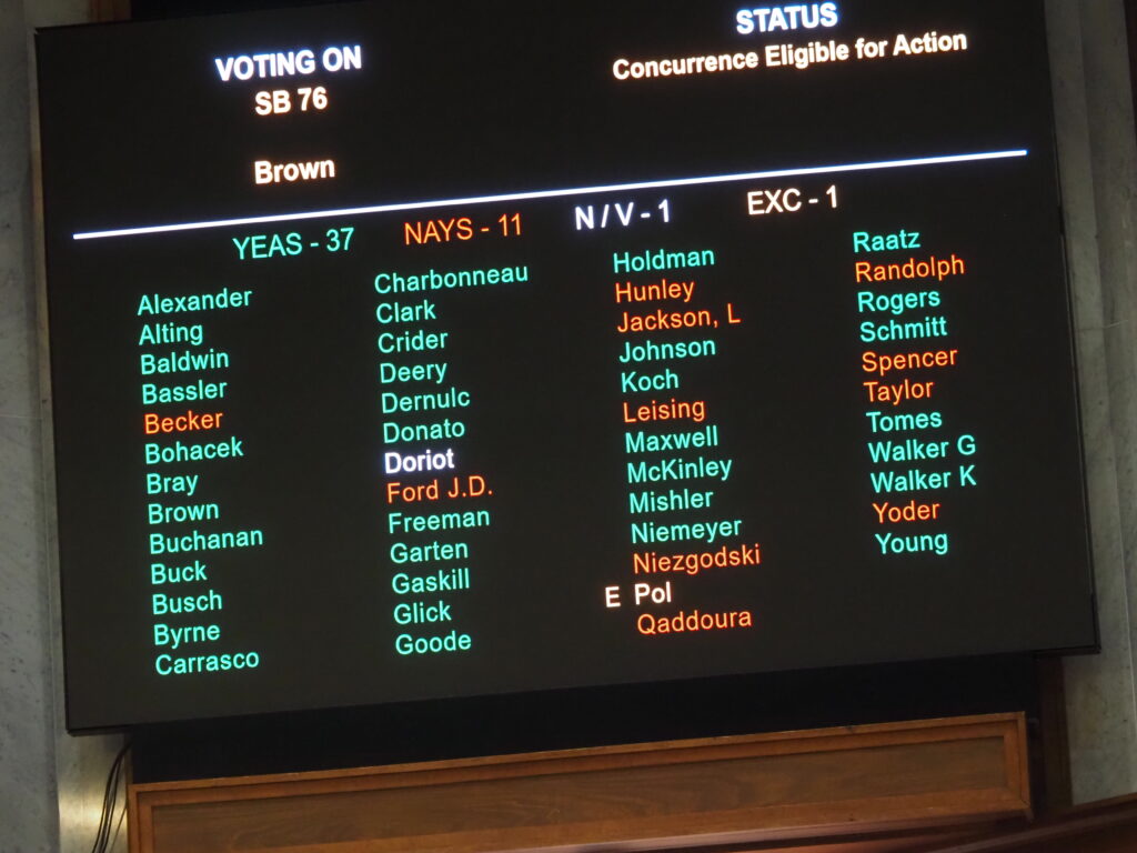 Senate Bill 76 exited the legislative process on an 37-11 concurrence vote and to a chorus of boos. Protesters outside the chamber also chanted slogans like “Ditch 76!” and “We dissent!” during about two hours of debate.