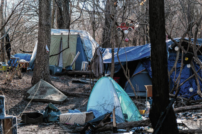 Mike Wolanin | The Republic A view of the homeless camp off the People Trail behind the old REMC building off Second Street in Columbus, Ind., Thursday, Dec. 14, 2023.