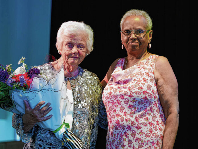 Mike Wolanin | The Republic Woman of the Year Jean Donica, left, and previous Woman of the Year Paulette Roberts pose for a photo during The Republic’s 43rd annual Woman of the Year ceremony at The Commons in Columbus, Ind., Wednesday, June 11, 2025.