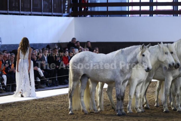 PARIS (AP) — Ten horses — five black, five white — entered the sand ring first. The models came second.