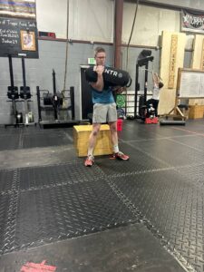 Josh Speidel lifts a sandbag at CGX CrossFit in Bargersville.